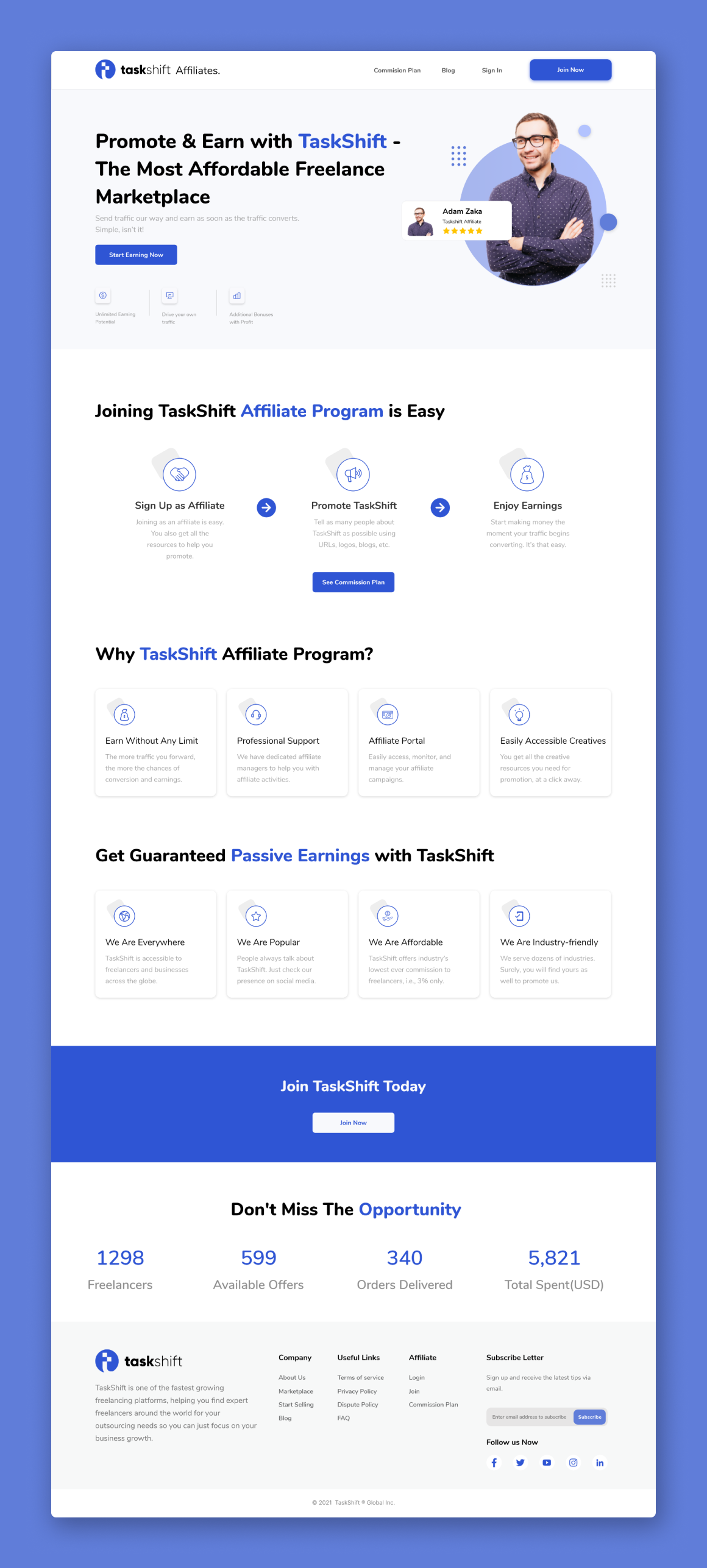 Taskshift is the premier freelance marketplace connecting talented professionals with businesses worldwide.They have a Taskshift Affiliate Program, where people can earn generous commissions by referring freelancers and businesses to their thriving marketplace.